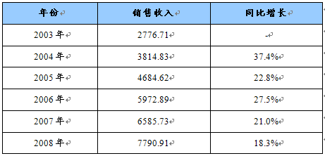 2003-2008年我国电子元件销售收入统计 单位:亿元