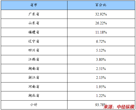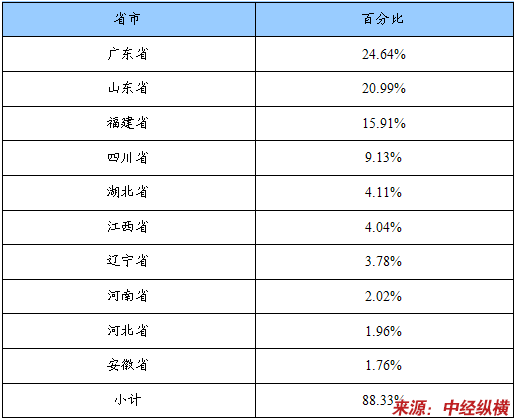 企业省市分布统计表(按企业数量)