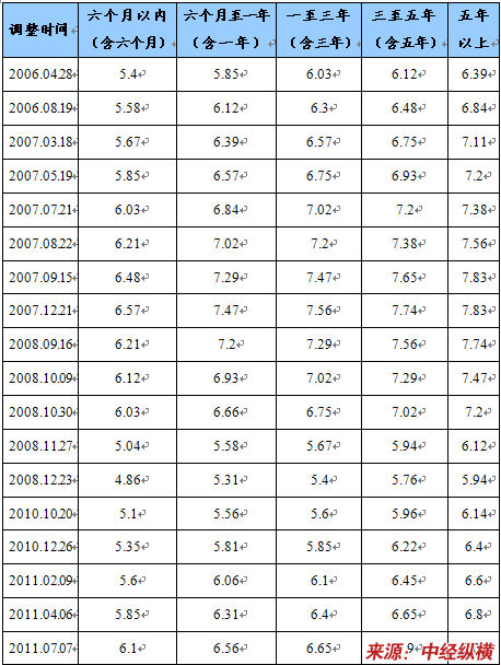 4、2006-2011年利率水平
