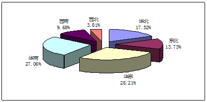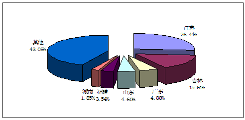 我国PTFE油封生产企业主要集中在华东、华南地区,华东地区主要以江苏为主,前十家企业中江苏占有三家,其市场份额占有26.44%,可见,目前PTFE油封的生产还比较集中。