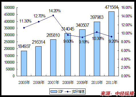 2005年-2011年我国GDP增长变化图