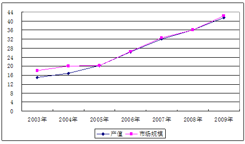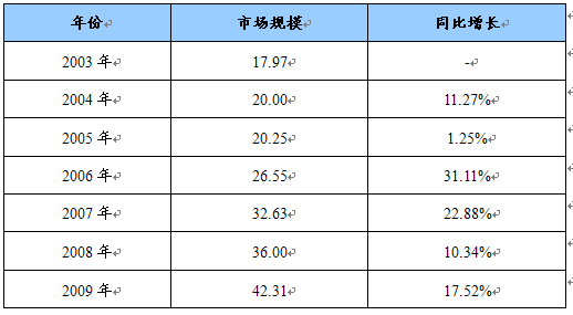 2003-2009年我国安防线缆市场规模统计表 单位:亿元