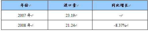 2007-2008年我国SMD LED支架进口量统计表 单位:亿只
