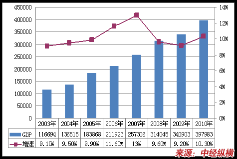 2003-2010年GDP及其增长情况