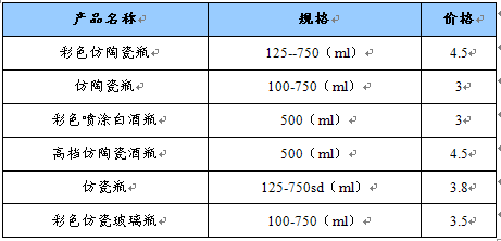 部分玻璃仿陶瓷酒瓶价格统计 单位:元/只