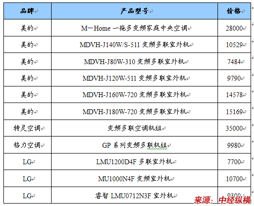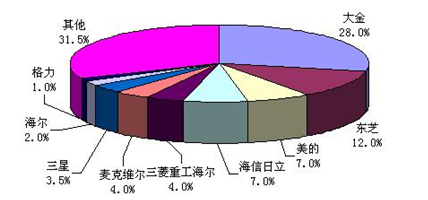 从总体市场看,以大金、日立、东芝、三菱重工、富士通、三菱电机、松下等日系背景的变频多联机品牌仍处于市场主导地位,此外走“变频路线”的多联机品牌比较出色的还有海尔、海信日立、三菱重工海尔、特灵、LG、志高、TCL、奥克肆、长虹等品牌在“变频路线”上谋发展;美的、格力、麦克维尔、三星则在数码涡旋多联机领域占据优势,以天加、国祥为代表的传统中央空调品牌目前仅处在数码多联的造势阶段。而另外两个水机市场的领导品牌约克和开利在多联机市场则表现平平。