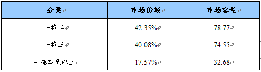 变频一拖二空调机占据一拖多大部分市场,目前市场上的变频一拖二空调按形式为壁挂式,虽然目前各大品牌都有自己的一拖二产品,但产品范围有限,一般制冷量在2000W~3200W之间,如果房间面积在空调的制冷范围以外,就达不到预期的制冷效果,目前在变频一拖二空调市场海尔、美的等知名品牌占据主要市场份额。
