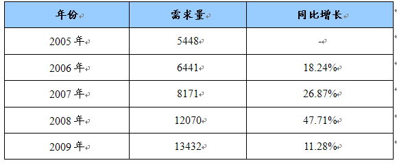 2005-2009年PDC钻头市场需求量及增长