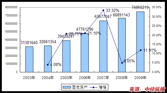 2003-2009年电线电缆制造 行业 固定资产发展状况