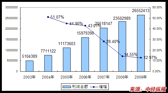 2003-2009年电线电缆制造 行业 利润总额发展状况