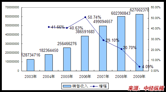 2003-2009年电线电缆制造 行业 销售收入发展状况
