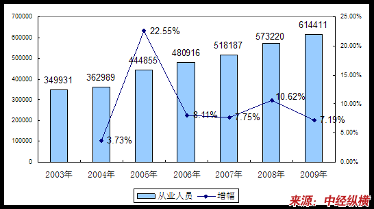 2003-2009年电线电缆制造 行业 从业人员发展状况