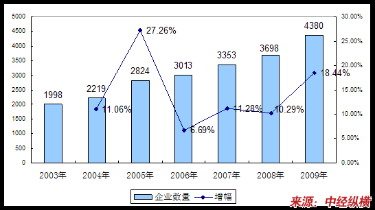 2003-2009年电线电缆制造 行业 企业数量发展状况