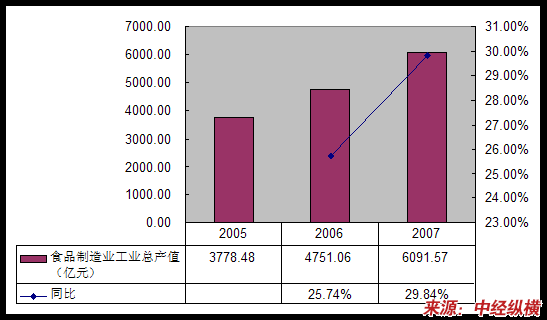 2005-2007中国食品制造 行业 工业总产值