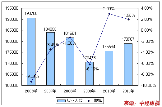 2006-2011年内燃机及配件制造 行业 从业人员发展状况