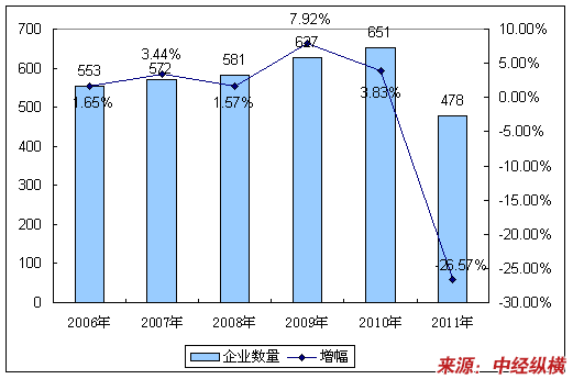 2006-2011年内燃机及配件制造 行业 企业数量发展状况