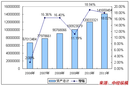 2006-2011年内燃机及配件制造 行业 资产总计发展状况