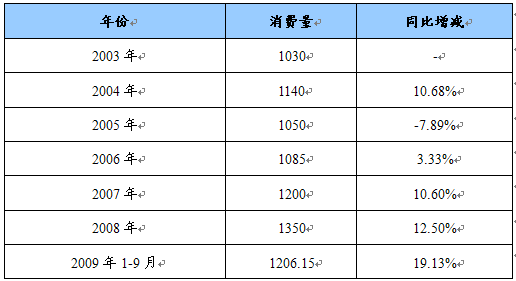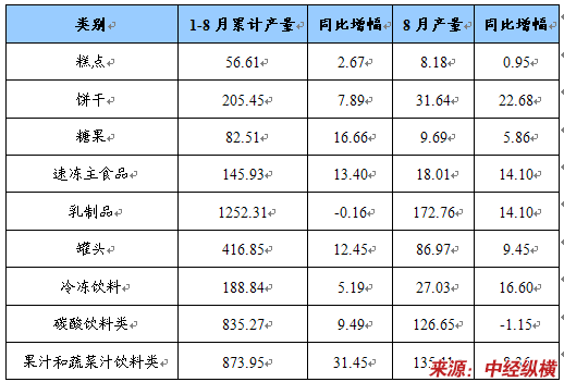 2010国内的经济继续的走好,人们的饮食习惯的改变,特别是饮料需求的高速增长,带动了白糖的消费,白糖消费将保持着5%到10%的增长,截至2009年8月末国内主要含糖食品产量,如下表:
