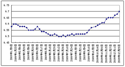 2009年我国白砂糖零售价格走势 单位:元/公斤