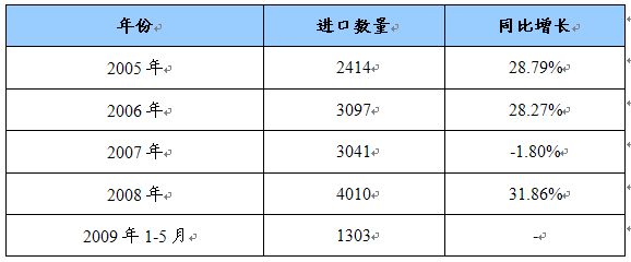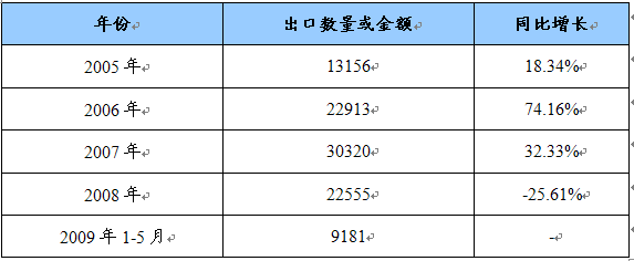 2005-2009年5月我国PVC夹网布出口数量统计 单位:吨