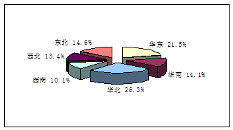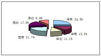 2009年我国IC卡膜式家用燃气表需求区域结构分布图
