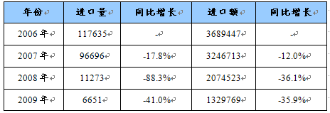 2006-2009我国煤气表(HS:90281010)进口量值统计表 单位:个、美元