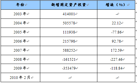 第一节 2003-2010年2月氨纶产业投资增长情况