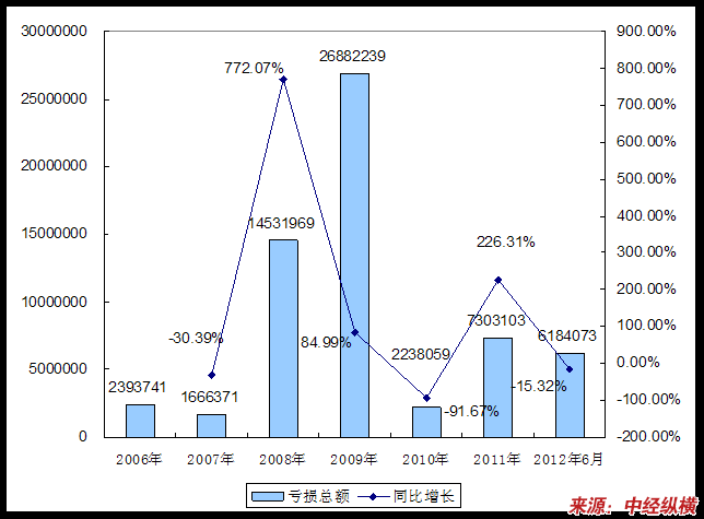 第九节 2006-2012年6月 行业 亏损总额