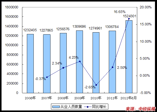 第十节 2006-2012年6月 行业 从业人员数量状况