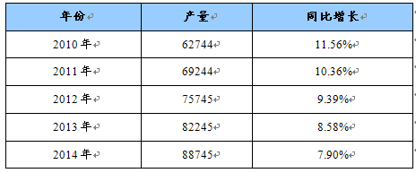 2010-2014年我国ECU检测仪产量及同比增长预测表 单位:台