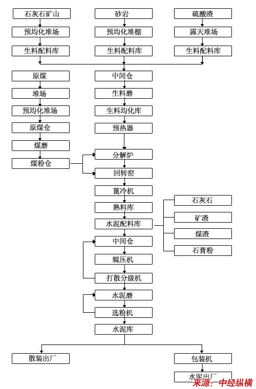 典型的新型干法水泥生产工艺流程示意图