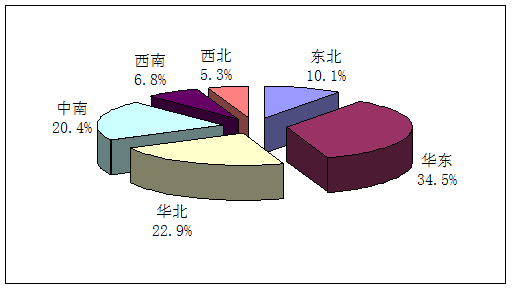 2010年中国3-巯基丙酸实现需求区域结构分布