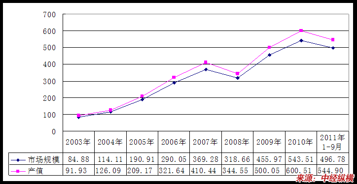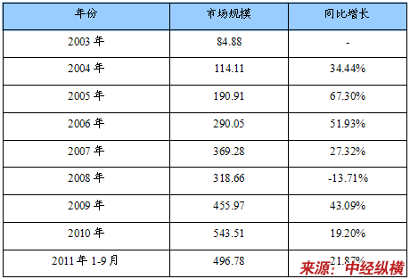 根据相关 行业 协会公布的资料显示近三年来货架的年需求量分别是2008年为43万吨2009年为40万吨2010年为45万吨,同时随着国家制定的物流振兴 规划 和物流业“国八条”的出台,物流业有了更大的发展,预计未来市场仍会继续保持20%以上的增速。