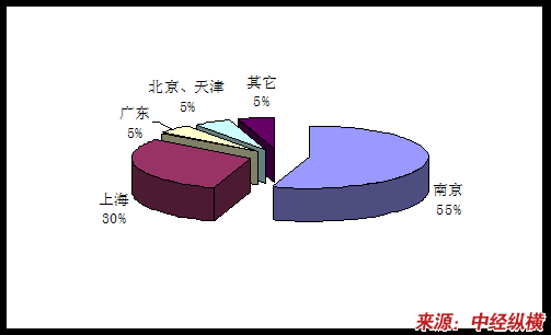从全国展示架、道具的出产比例来看,集中程度高。在国内市场上,约55%的展示架、道具产自南京,30%的展示架、道具产自上海,5%的展示架、道具产自广东,5%来自北京、天津,其余的5%来自各地展示架、道具和进口。