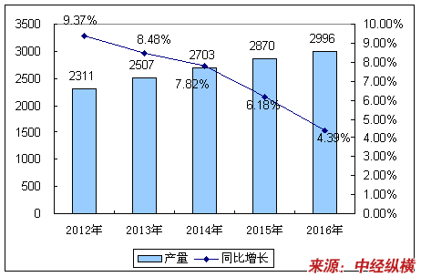 | 年份 | 产量 | 同比增长 |