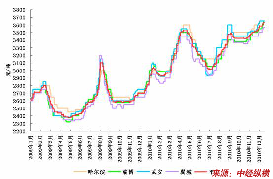 2009年-2010年国内部分地区生铁价格走势