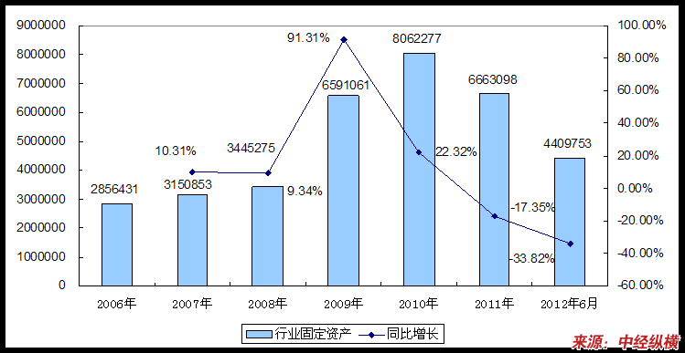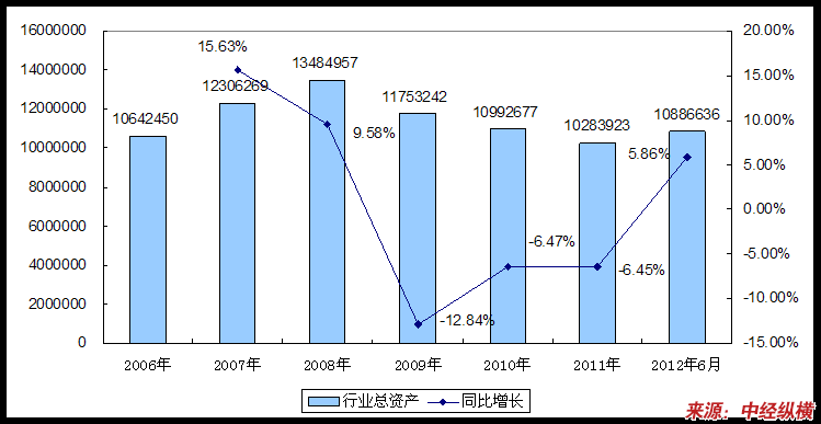 2006-2012年6月笔制造 行业 总资产及其同比增长率