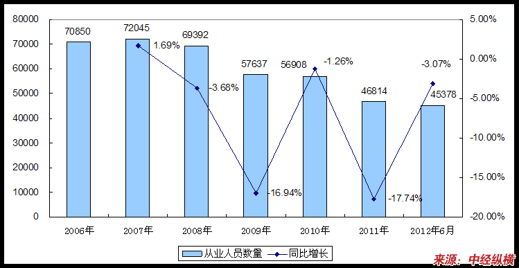 第四节 2006-2012年6月 行业 从业人员数量状况