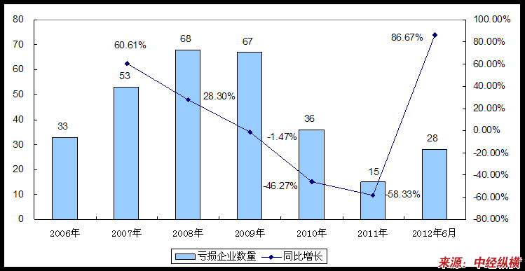 第二节 2006-2012年6月 行业 亏损企业数量状况