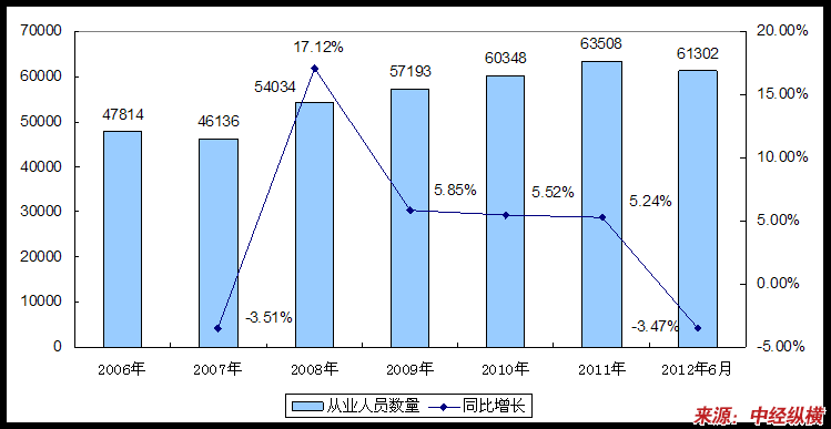 第四节 2006-2012年6月 行业 从业人员数量状况