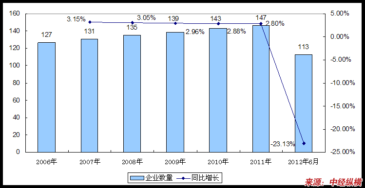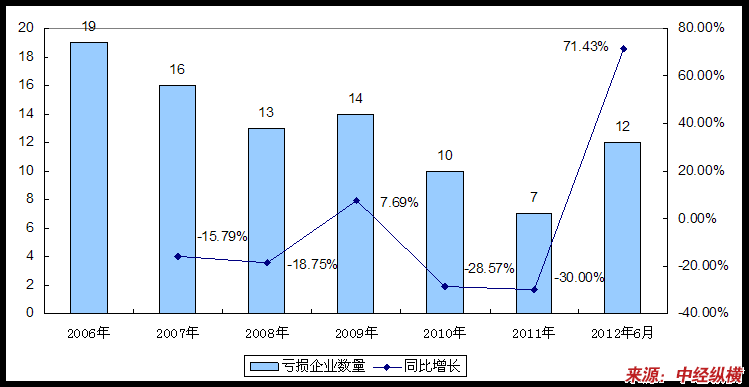 第二节 2006-2012年6月 行业 亏损企业数量状况