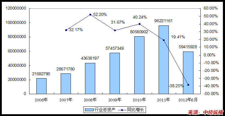 2006-2012年6月金冶炼 行业 总资产及其同比增长率