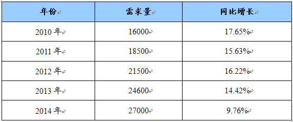 2010-2014年我国I+G需求量增长预测表 单位:吨