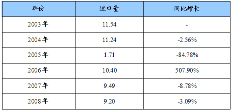 一、2008年进口总量 分析