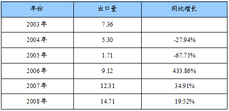 2003-2008年我国汽车空调出口量统计