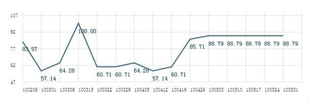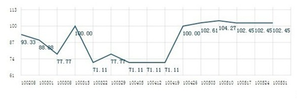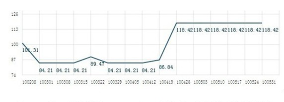 电解电容35V1000UF(13×20),涨价始于4月中旬,价格指数出现30多个点涨幅,此后价格一直维持在高位,后期市场降价的可能性并不大。