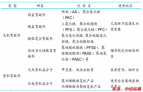 按其化学成分,絮凝剂可分为无机盐类絮凝剂、有机高分子絮凝剂和微生物絮凝剂。无机盐类絮凝剂的品种较少,主要是铝盐、铁盐、水解聚合物等低分子盐类以及无机高分子等絮凝剂。有机高分子絮凝剂主要有合成的有机高分子絮凝剂和天然改性有机高分子絮凝剂。