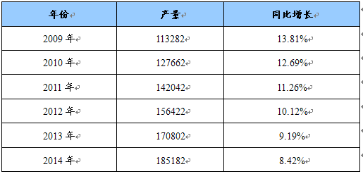 2009-2014年我国PVC夹网材料产量预测 单位:万平方米