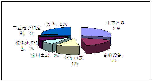 使用微电机的产品中信息技术设备(含通信设备)为最大用户,在微电机应用领域中,电子信息和通信设备是世界微电机市场用量增长最快的领域,年均增长率高达20%-30%左右,2000年增至18亿台,2001年达到23.2亿台。这主要归功于PC机、VCD(DVD)、CD-ROM驱动器等主轴电机、步进电机、负载电机以及蜂窝移动电话、船呼机振动用无芯和有芯电机的需求。