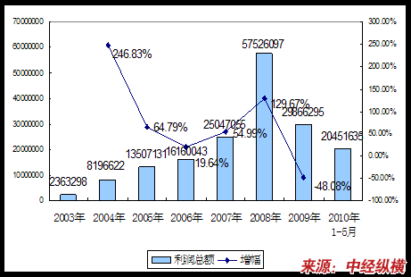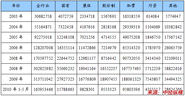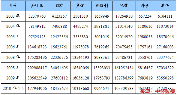 2003-2010年铁矿采选业不同所有制企业利润总额